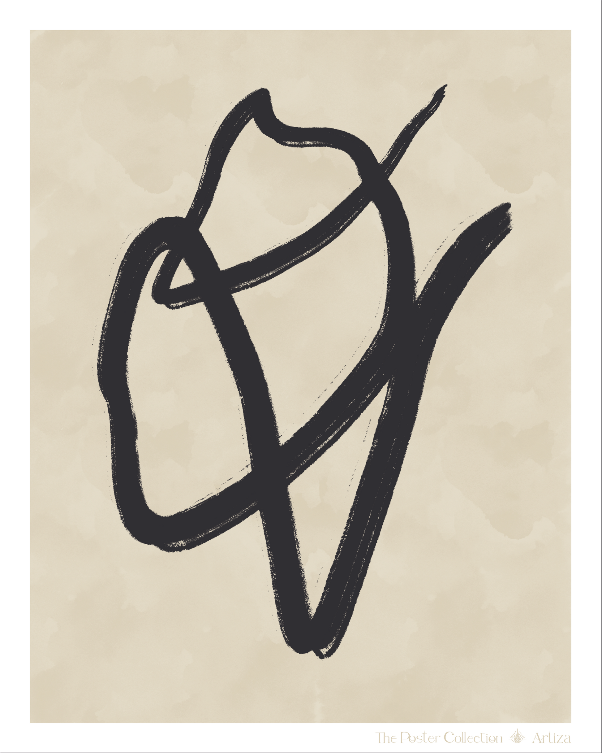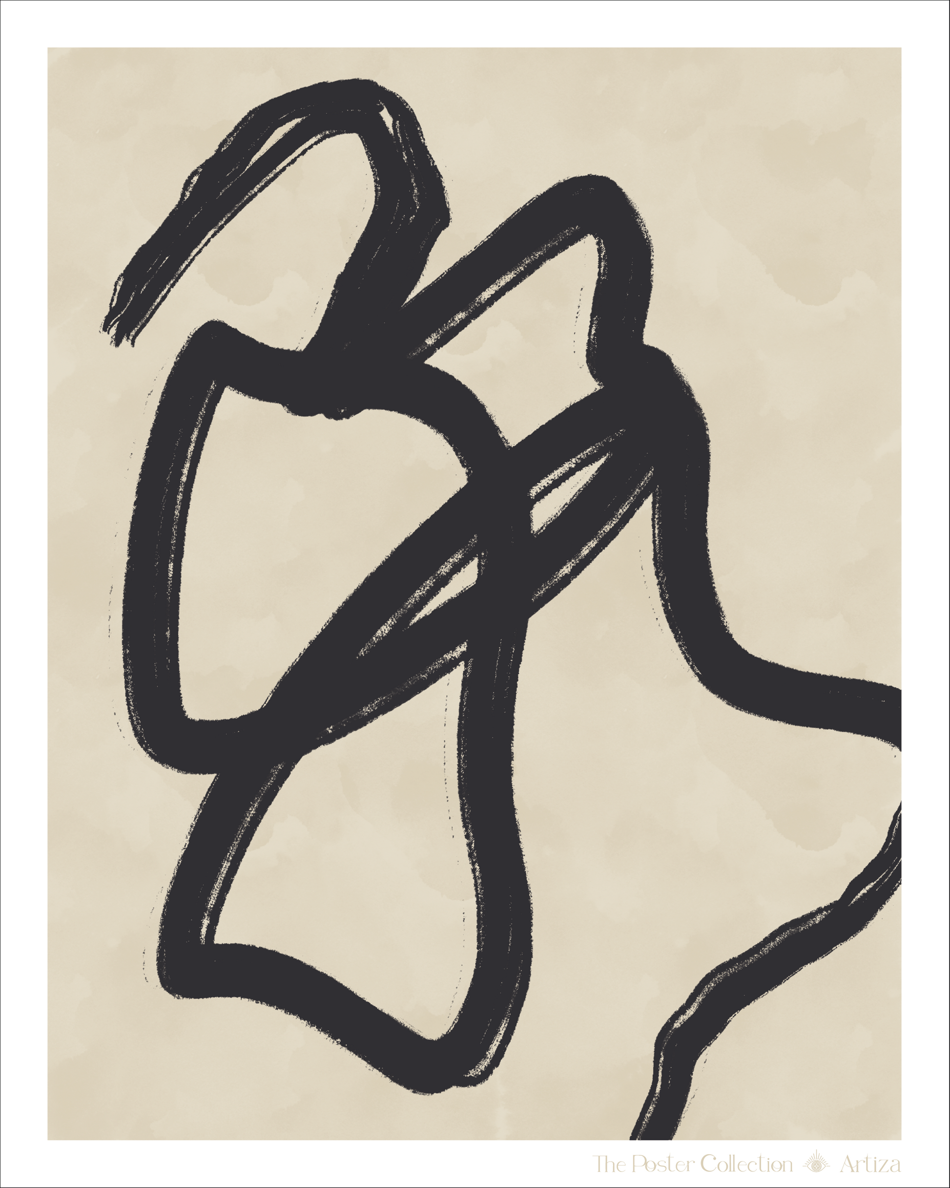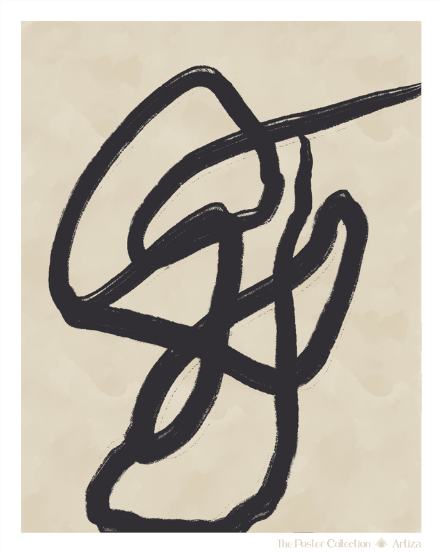 La colección Trazo captura la pureza del trazo libre y abstracto sobre un fondo beige, creando un diálogo entre forma y vacío con serenidad y elegancia.